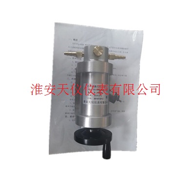 兩側(cè)的壓力輸出在出廠時都標配軟管接頭,接口標配規(guī)格為:M20×1.5內(nèi)螺紋。其中一側(cè)接標準表另一側(cè)與被校表連接。擰緊放氣閥,需發(fā)生正壓時,將搖輪搖至最大開度,順時針搖動手輪;如需發(fā)生負壓是,將搖輪搖到最底,逆時針搖動手輪。看被校表的壓力值與標準表是否一致來調(diào)整被校表,用對比法進行校準。